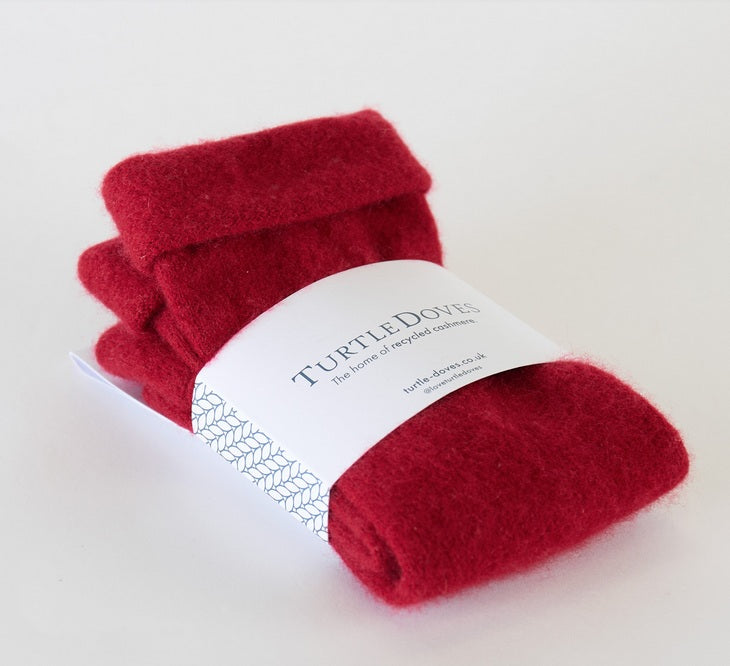 Turtle Doves Fingerless Gloves offer a snug, heat-retaining fit for ultimate warmth and comfort. Crafted with luxurious 100% recycled cashmere and boasting increased hand circulation, these fingerless gloves are the perfect year-round solution. The recycled nature of what Turtle Doves do means that every pair is unique. Colours and styles may vary.