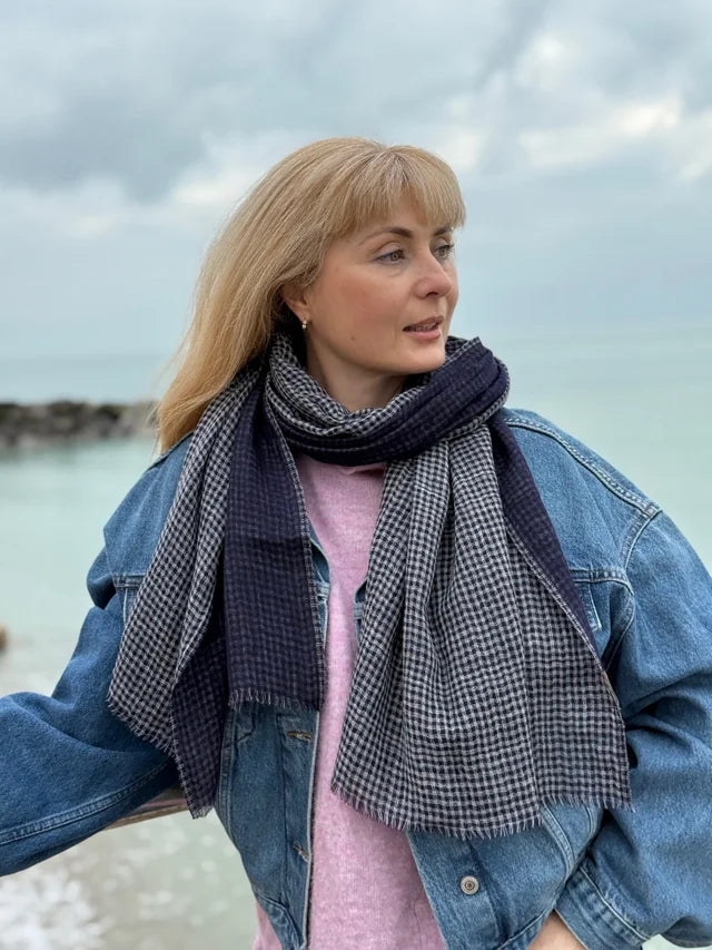 the Port Issac reversible scarf is perfect for anyone who wants a classic look. It's got checks on one side and plain on the other. Its super soft with a lighter weaves than most of the J.E. scarves.
